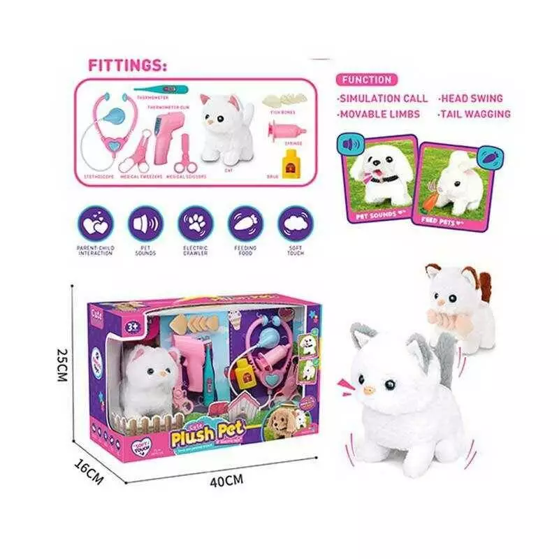Улюбленець LK 008 C (18/2) “Котик”, на батарейках, звук, рух лапками, головою і хвостиком, стетоскоп, термометр, шприц, ножиці, морква, в коробці
