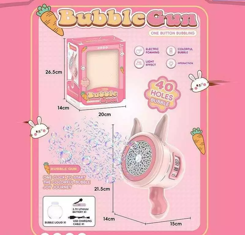 Установка з мильними бульбашками 138 (36) акумулятор 3.7 V, підсвічування, пляшечка із мильною рідиною, в коробці