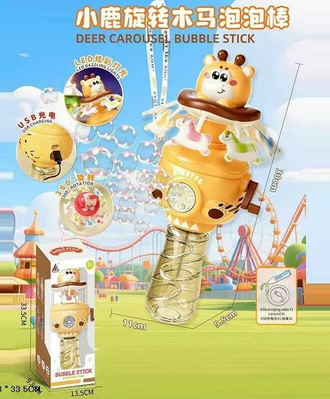 Установка з мильними бульбашками 855 A (30) «Парк розваг», світло, автоматична, карусель обертається, пляшка з розчином, вбуд. акумулятор, в коробці
