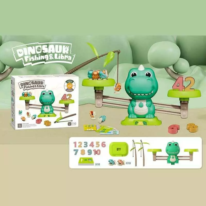 Балансир BQ 829 B (48/2) "Динозаврик", магнітна риболовля, 2 вудочки, 10 двосторонніх карток, 10 голів динозаврів, цифри від 1 до 10, в коробці