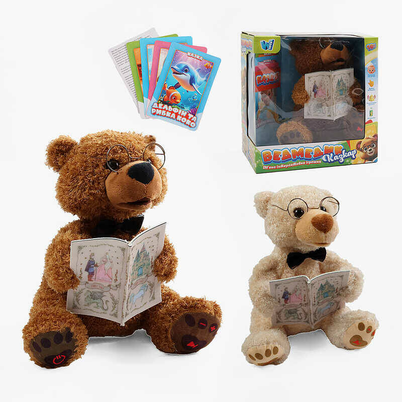 Ведмедик казкар 31515 (16/2) 2 види, "WToys", ОЗВУЧ. УКР. МОВОЮ, 15 аудіоказок, 5 карток із казками, скоромовки та звуки, кнопки на лапках, в коробці