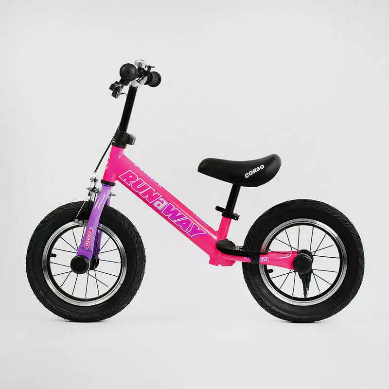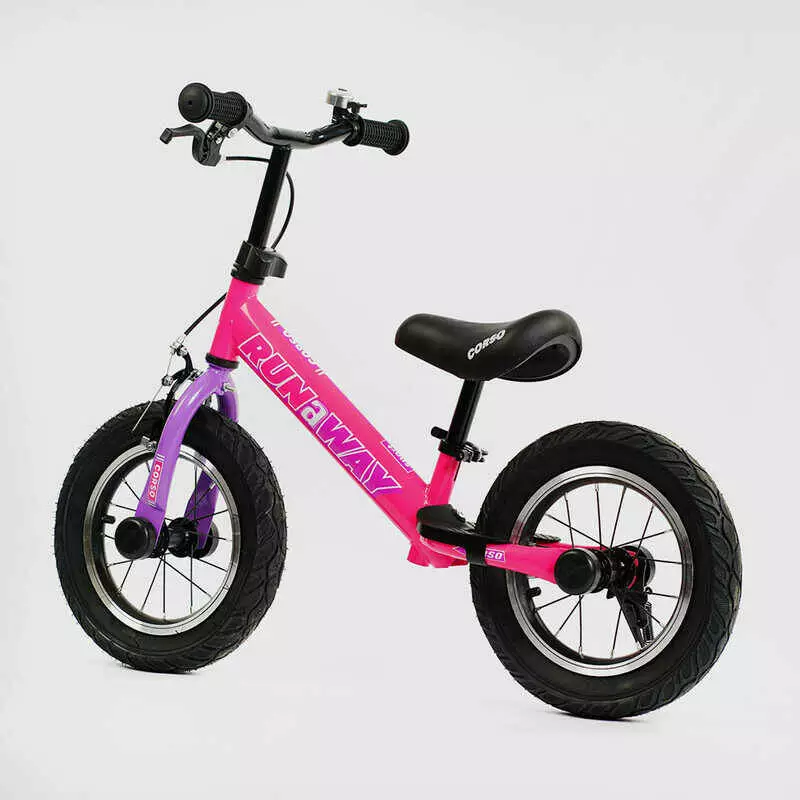 Велобег Corso "Run-a-Way" CV-03348 (1) стальная рама, надувные колеса 12", ручной тормоз, подножка, подставка для ножек, звоночек, в коробке