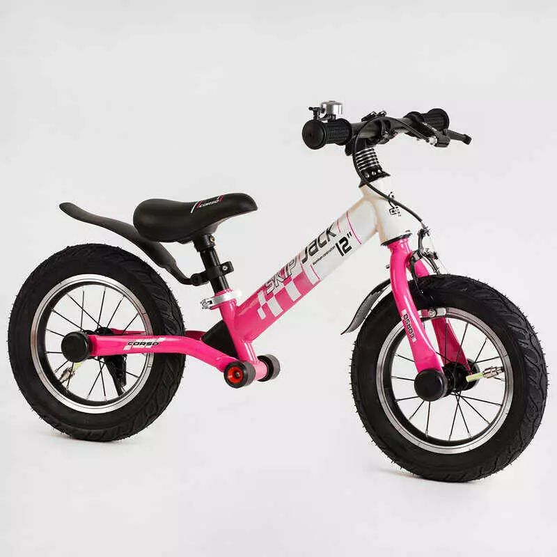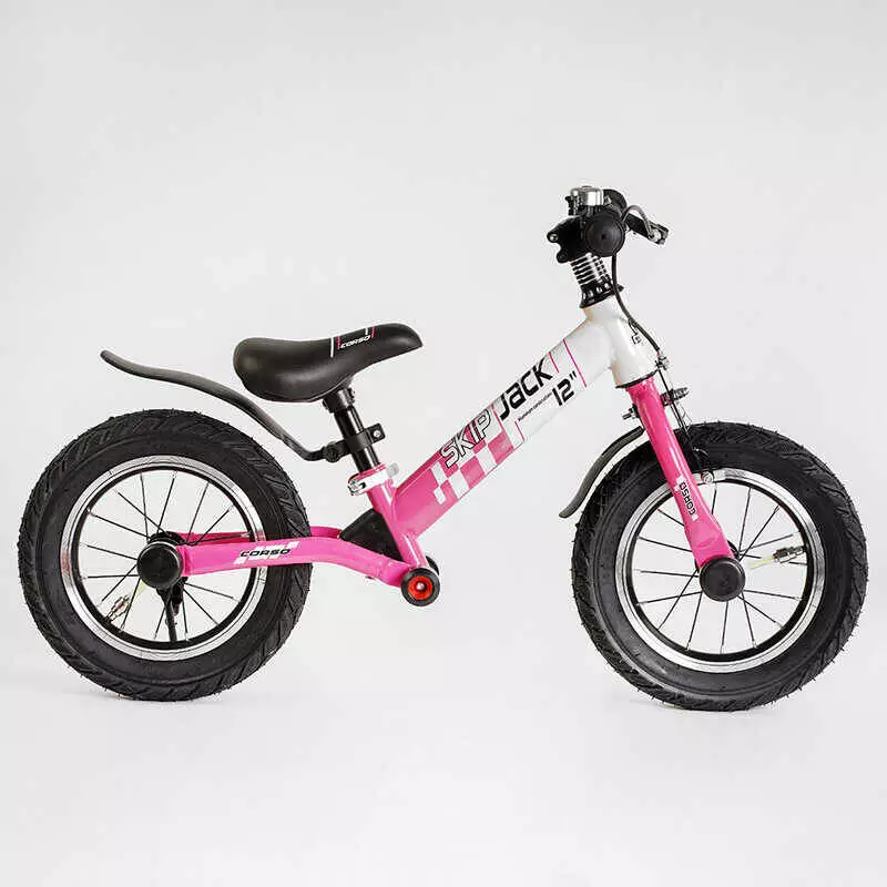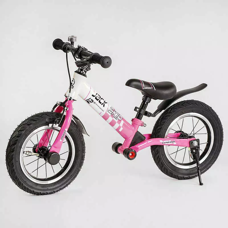 Велобег Corso "Skip Jack" 25025 (1) РОЗОВО-БЕЛЫЙ, надувные колеса 12", стальная рама с амортизатором, ручной тормоз, подножка, в коробке