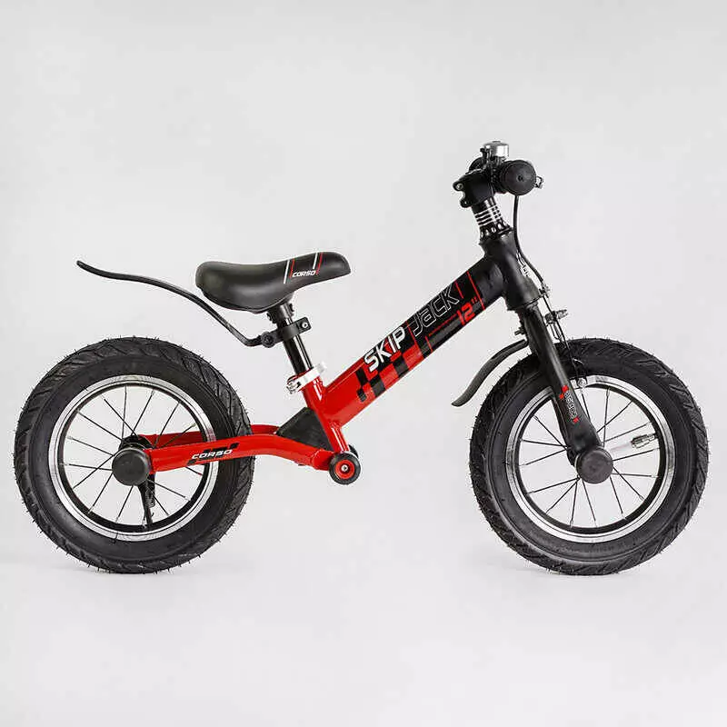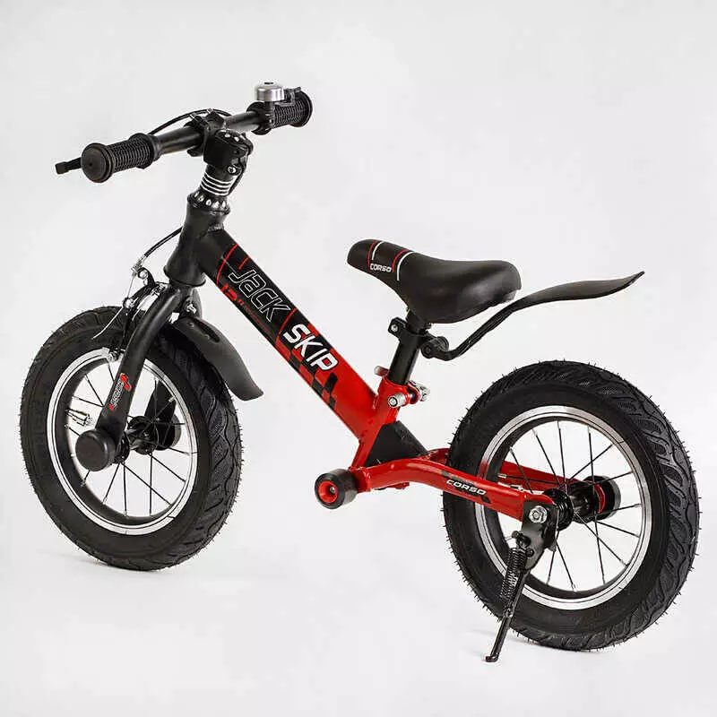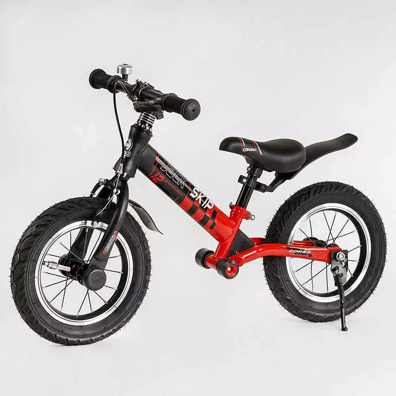 Велобег Corso "Skip Jack" 44538 (1) ЧЕРНО-КРАСНЫЙ, надувные колеса 12", стальная рама с амортизатором, ручной тормоз, подножка, в коробке