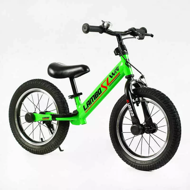 Велобіг "CORSO LAMBO" LB-14700 (1) сталева рама, ручне гальмо, колеса надувні резинові 14’’, алюмінієві обода, підставка для ніг, підніжка, дзвоник