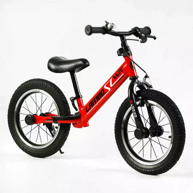 Велобіг "CORSO LAMBO" LB-14811 (1) сталева рама, ручне гальмо, колеса надувні резинові 14’’, алюмінієві обода, підставка для ніг, підніжка, дзвоник
