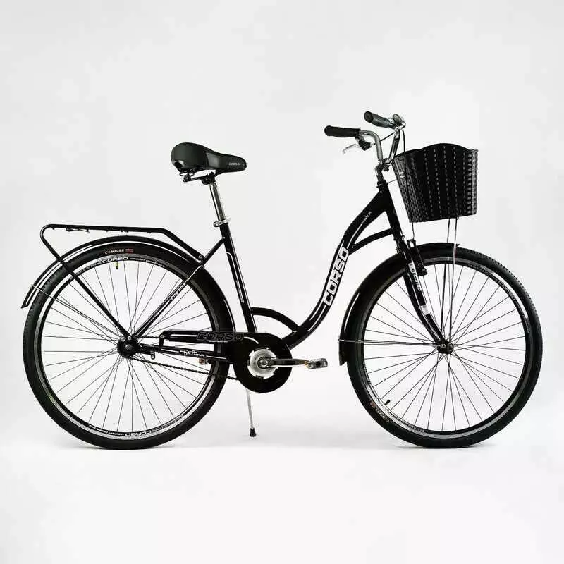 Велосипед міський Corso «FORTUNA» 28`` FR-28163 + КОШИК (1) чорний, одношвидкісний, сталева рама 20``, корзина, багажник