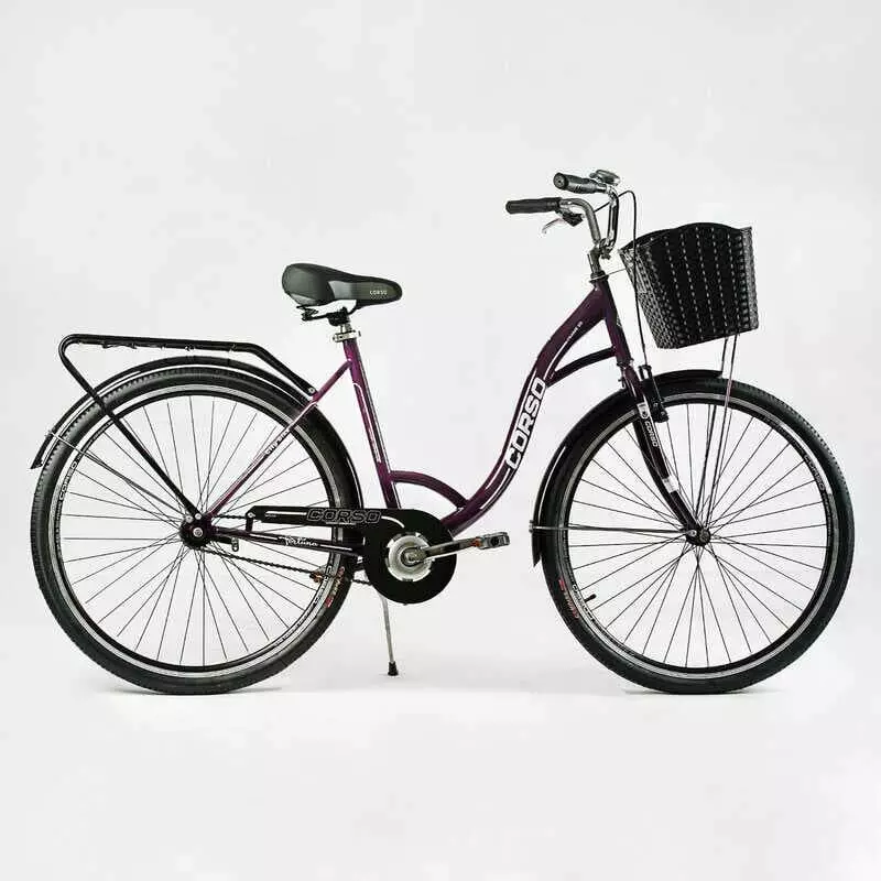 Велосипед міський Corso «FORTUNA» 28`` FR-5198 + КОШИК (1) одношвидкісний, сталева рама 20``, корзина, багажник