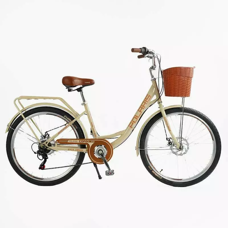 Велосипед міський Corso «Polaris» 26`` PS-72411 + КОШИК (1) сталева рама 16.5``, Shimano 7 швидкостей, корзина, багажник