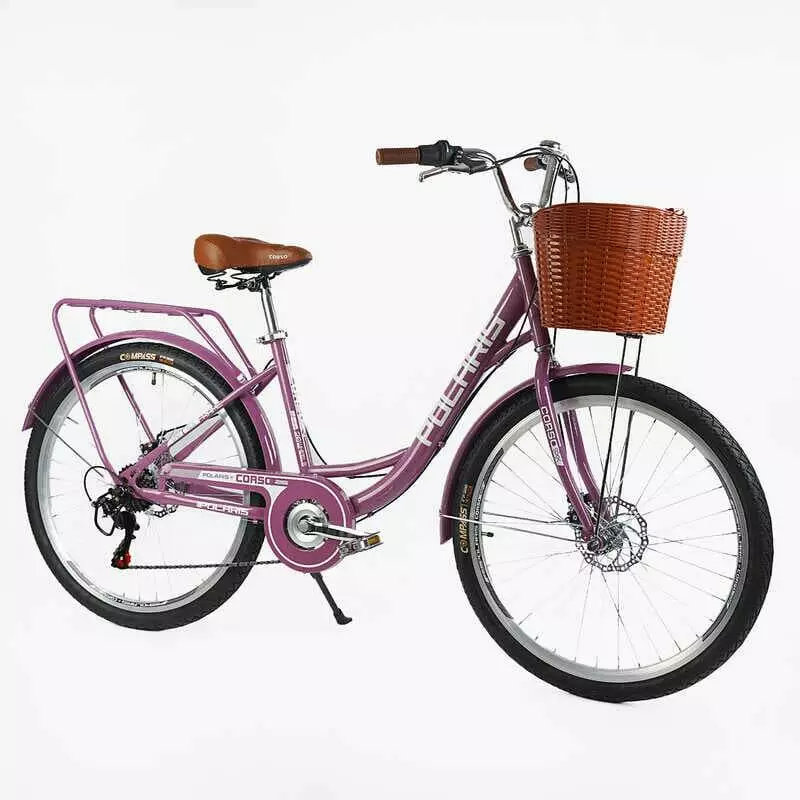Велосипед міський Corso «Polaris» 26`` PS-91606 + КОШИК (1) сталева рама 16.5``, Shimano 7 швидкостей, корзина, багажник