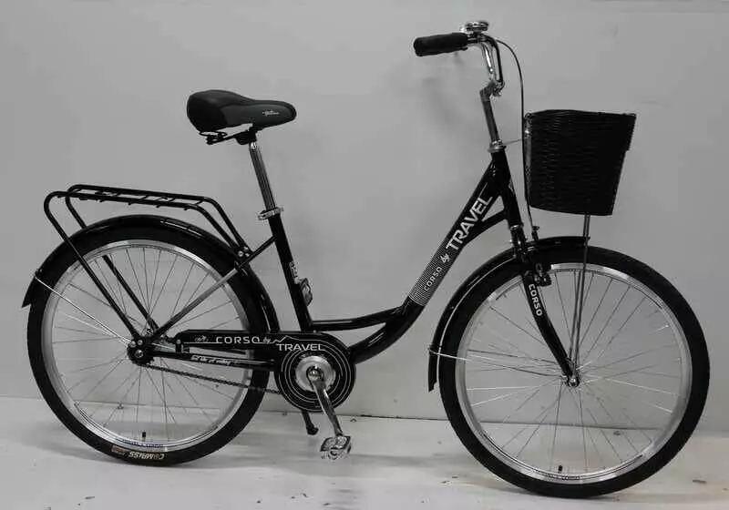 Велосипед міський Corso «TRAVEL» 26`` TL-26207 + КОШИК (1) колір ЧОРНИЙ, одношвидкісний, сталева рама 16.5``, корзина, багажник