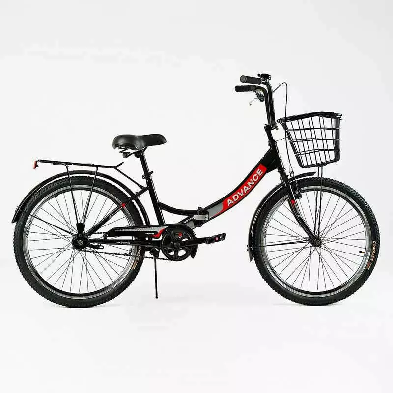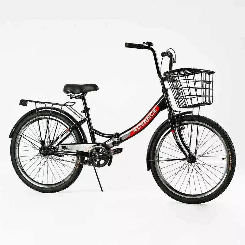 Велосипед складний Corso 24`` Advance AD-24400 (1) + КОШИК, одношвидкісний, складна сталева рама 14``, корзина,у мішку