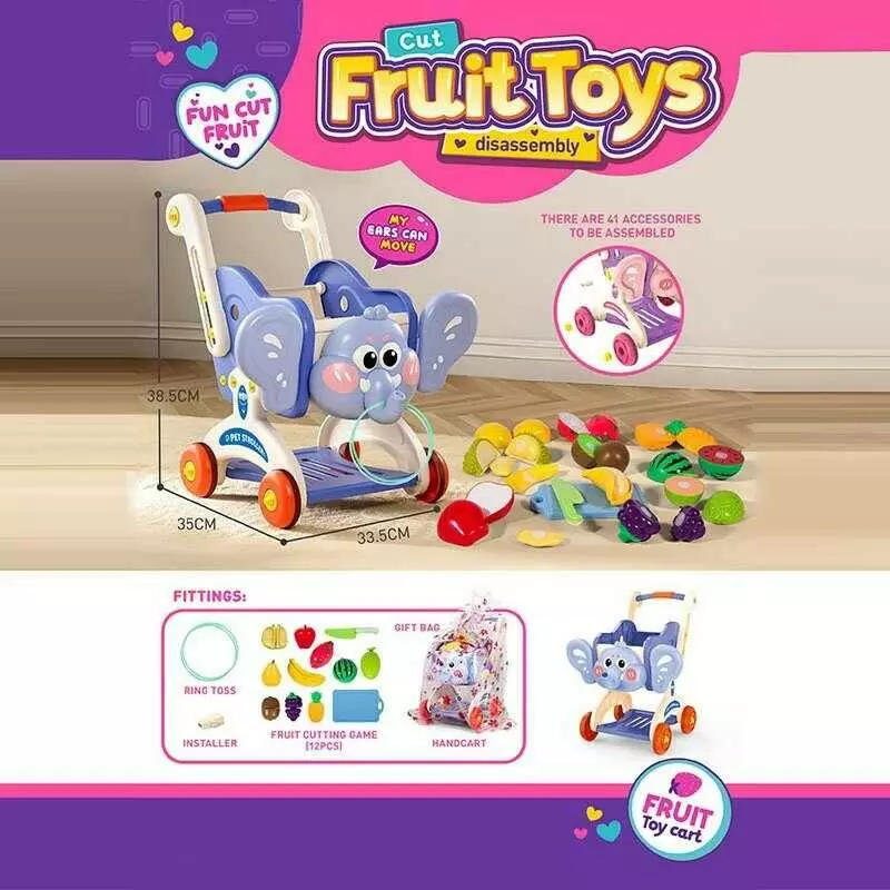 Візок з фруктами KK 111 ШТРИХ=400020 (8) розмір: 33.5х35х38.5 см, фрукти на липучках, дошка, ніж, в пакеті