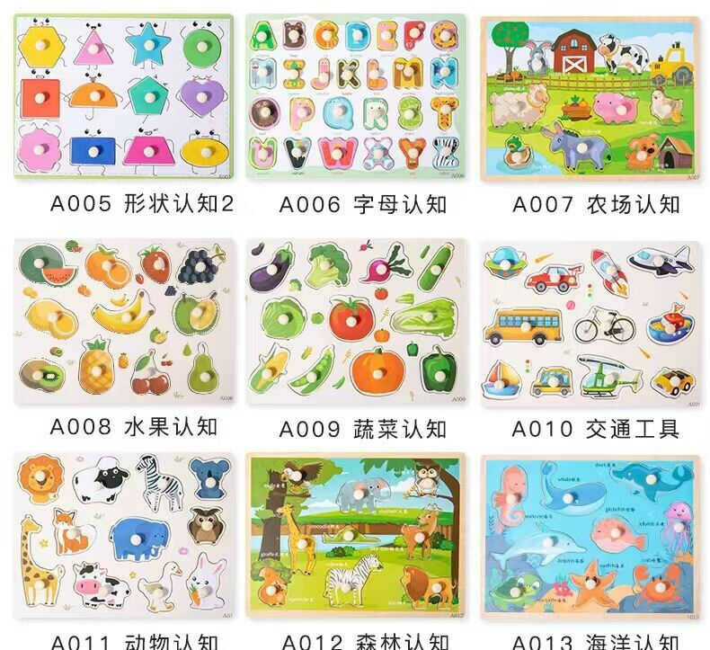 Вкладиші C 75611 (100) дерев’яні, тематичні фігурки, ручка-тримач,