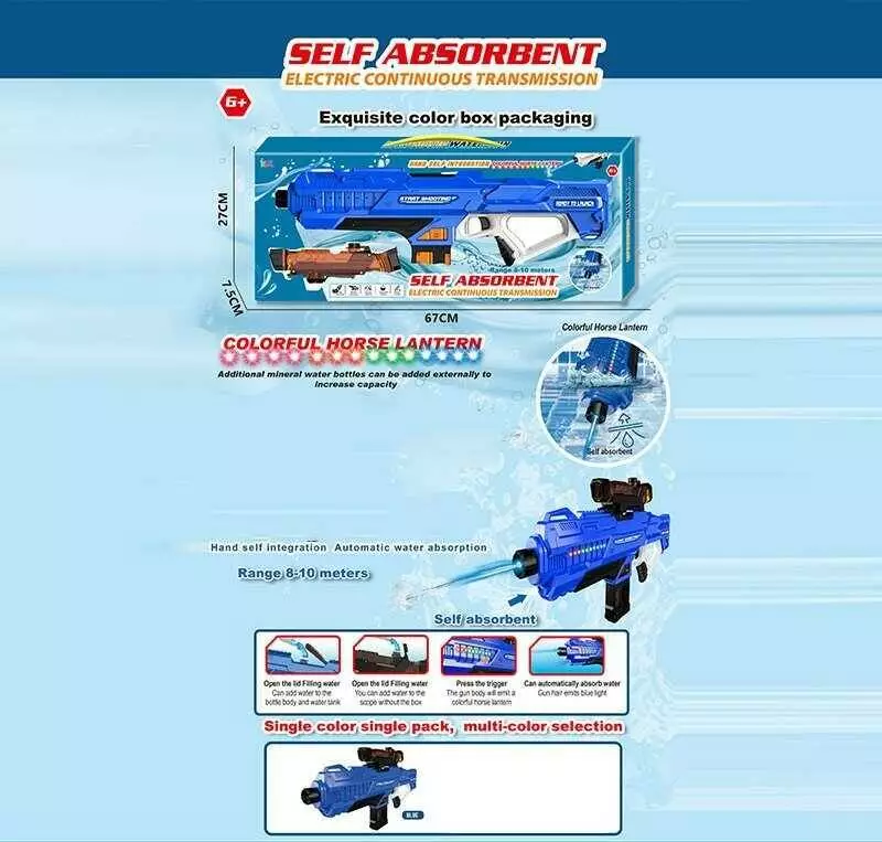 Водний автомат 456-105 A Штрих = 90422 (18) акумулятор 3.7 V, USB кабель, підсвітка, автоматична подача води, стріляє на 10 метрів, в коробці