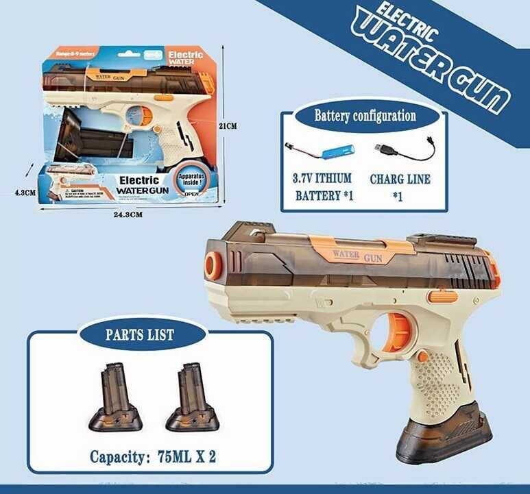 Водний пістолет QS 811-206 (60) довжина 23 см, автоматичний принцип, 2 знімні резервуари, об’єм 75 мл, акумулятор 3.7 V, в коробці