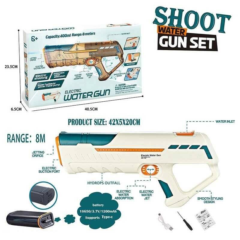 Водний пістолет QS 811-243 (18) автоматичний принцип роботи, акумулятор 3.7V, USB Typ-C кабель, викрутка, автоматично набирає воду, в коробці
