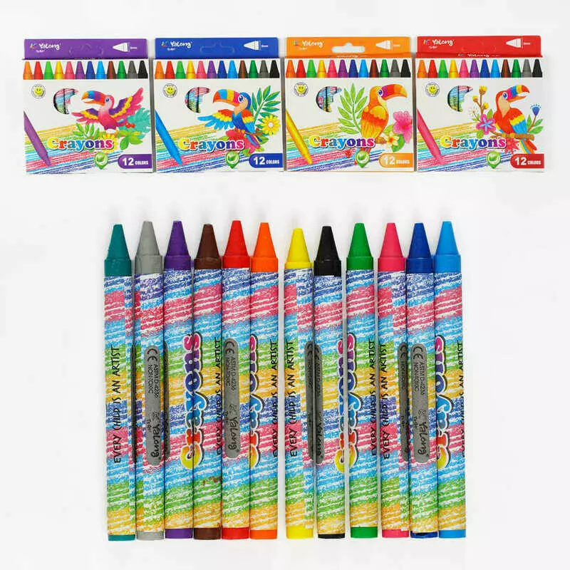 Воскові олівці С 62114 (288) 4 види, 12 кольорів, в коробці, ВИДАЄТЬСЯ ТІЛЬКИ МІКС ВИДІВ