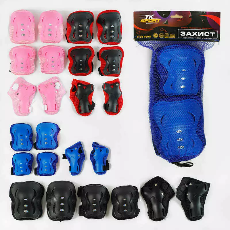 Захист C 64609 (100) "TK Sport", 4 кольори, налокітники, наколінники, зап`ястя, у сітці, ВИДАЄТЬСЯ ТІЛЬКИ МІКС ВИДІВ