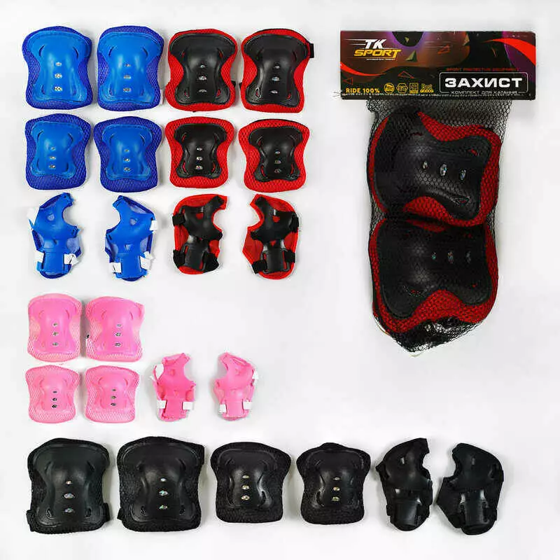 Захист C 64610 (100) "TK Sport", 4 кольори, налокітники, наколінники, зап`ястя, у сітці, ВИДАЄТЬСЯ ТІЛЬКИ МІКС ВИДІВ
