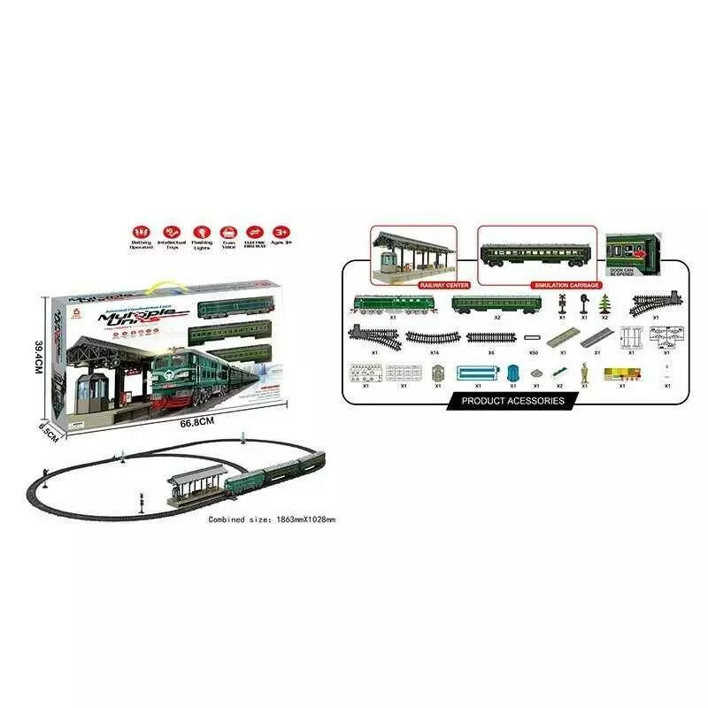 Залізниця 22915 (12/2) залізнична колія, залізнична станція, локомотив, 2 вагони, підсвічування, звуки, в коробці