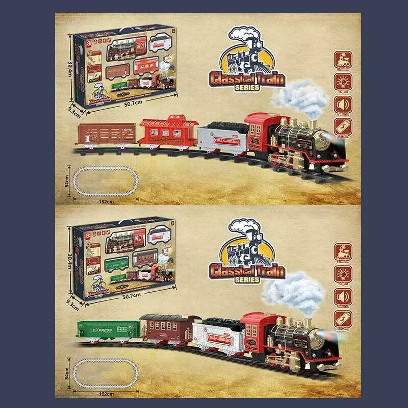 Залізниця 3091 А/В (12) 2 види, 19 елементів, на батарейках, звук, підсвічування, парогенератор, у коробці
