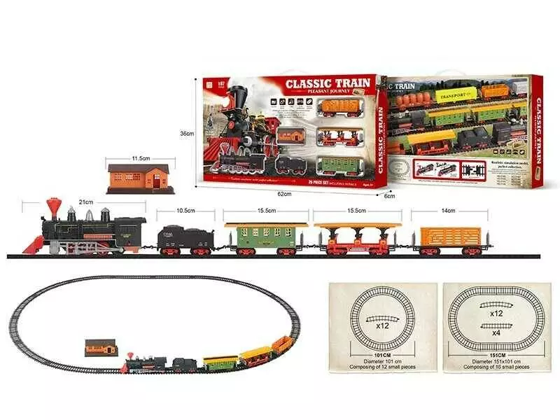 Залізниця 5143 (18/2) 26 елементів, звуки, підсвічування, локомотив, 4 вагони, в коробці