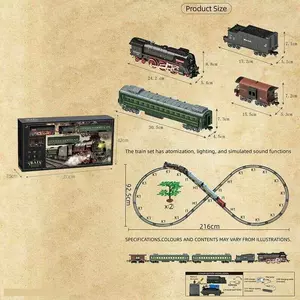 Залізниця 605 B (6) 5 вагонів довжиною 104 см, дорога 93х216 см, світло, пара, звук-беззвуч. режим, рух вперед-назад, акум. 3.7V, в коробці