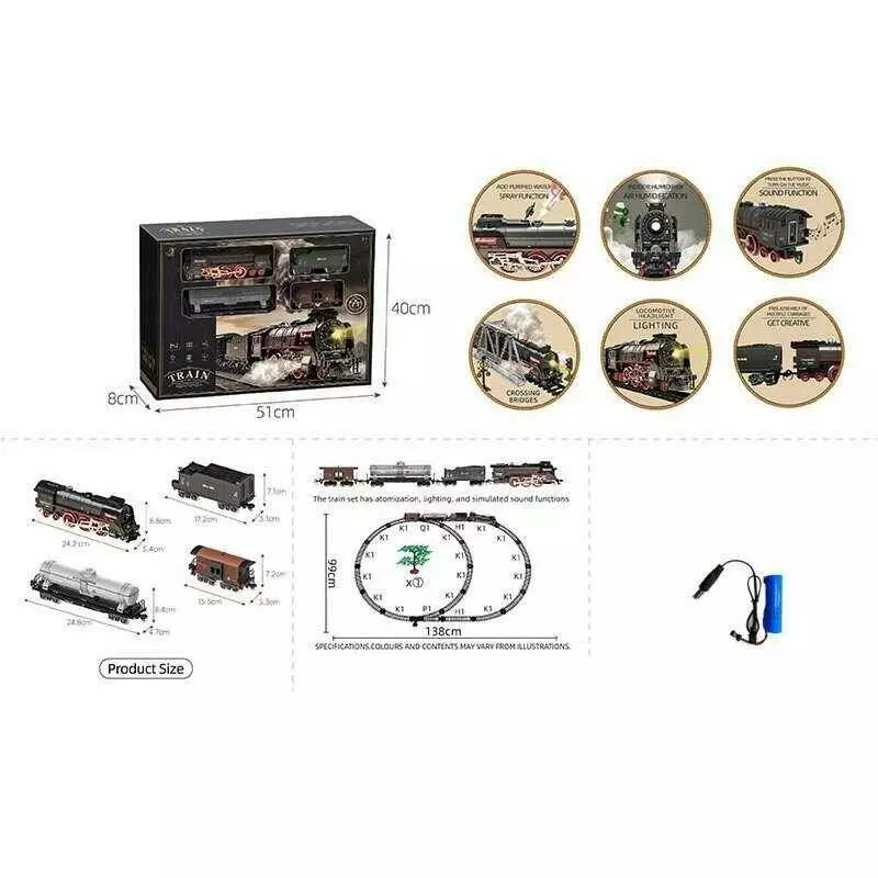 Залізниця 611 B (12) 4 вагони довжиною 72 см, дорога 99х138 см, підсвічування, пара, звук-беззвучний режим, рух вперед-назад, ак. 3.7V, в коробці