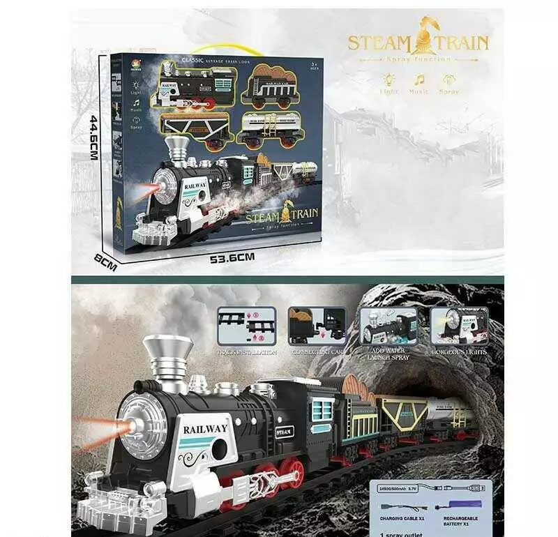 Залізниця 699-26 A (10) світлові та звукові ефекти, акумулятор 3.7 V, USB кабель, парогенерація, автоматичний принцип роботи, в коробці