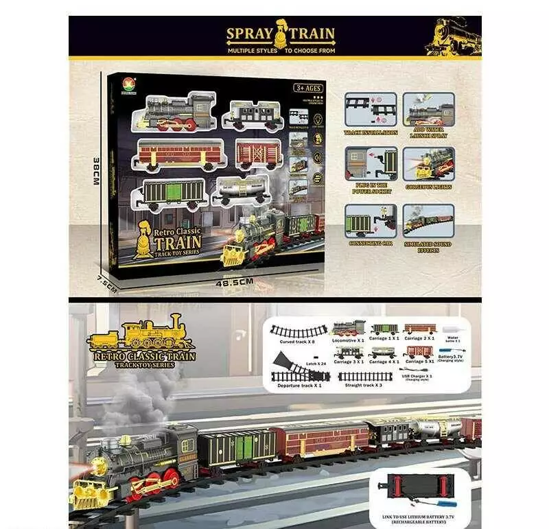 Залізниця 699-34 A (12) акумулятор 3.7 V, локомотив, 5 вагонів, звуки, підсвічування, парогенератор, в коробці