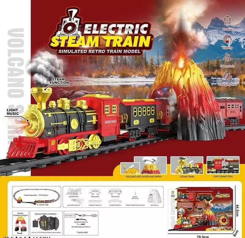 Залізниця 699-51 A (8) 20 елементів, локомотив, 3 вагони, акумулятор 3.7 V, підсвічування, парогенератор, звуки, вулкан, в коробці