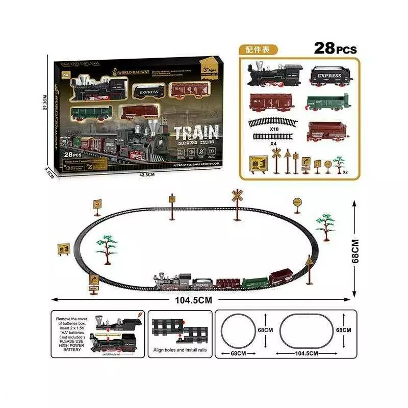 Залізниця 9299-86 (48) 28 ел., 5 вагонів довжиною 54 см, дорога 104х68 см, світло, звук-беззвуч. режим, рух вперед, на батарейках, в коробці