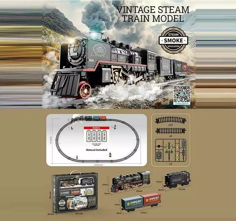 Залізниця HS 8019 A (16) локомотив, 2 вагони, звуки, підсвічування, парогенератор, в коробці