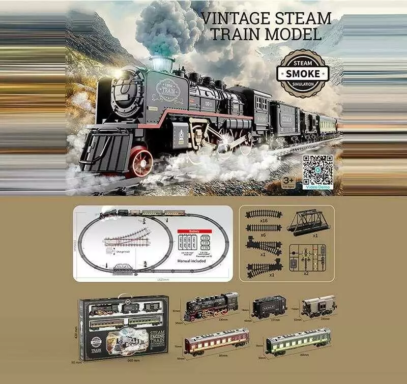 Залізниця HS 8023 A (10) локомотив, 4 вагони, звуки, підсвічування, парогенератор, в коробці