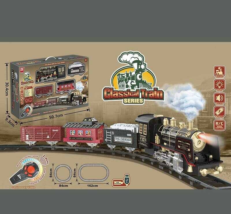 Залізниця на радіокеруванні 3152 B (12) акумулятор 3.7 V, пульт 2.4 GHz, локомотив, 3 вагони, звуки, підсвічування, парогенератор, в коробці