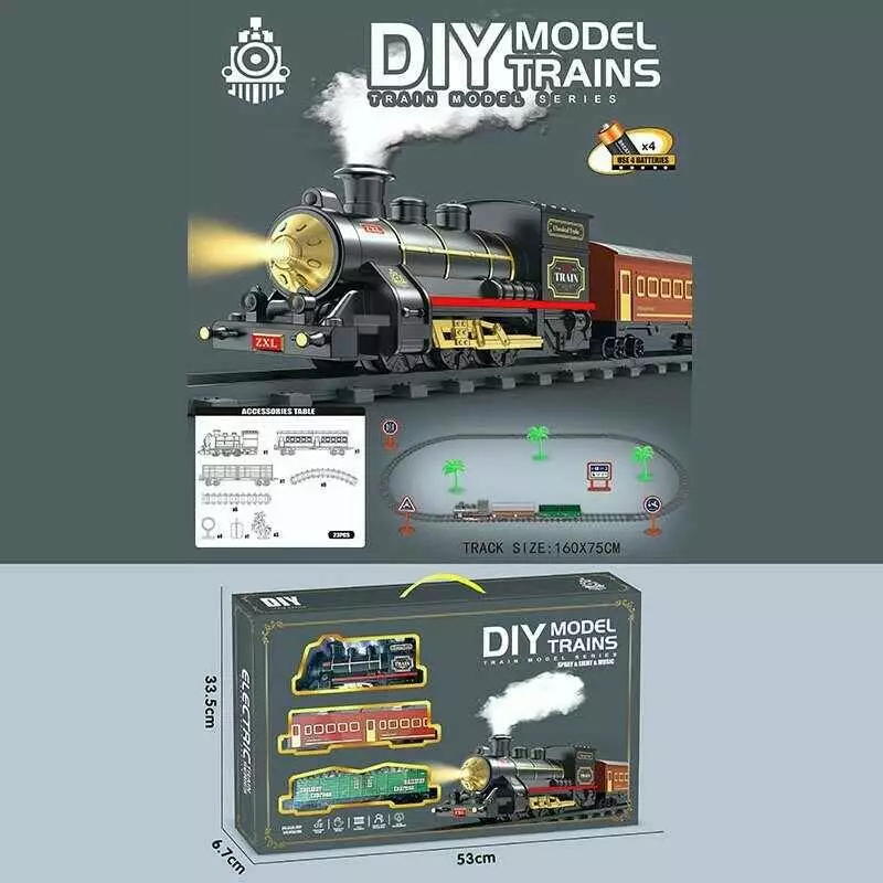 Залізниця XZ 012 (24) локомотив, 2 вагони, колія: 160х75 см, підсвічування, звуки, парогенерація, аксесуари, в коробці
