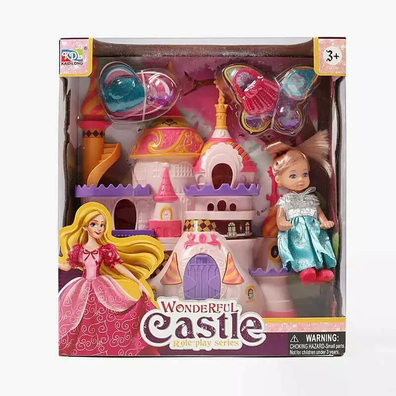 Замок з лялькою KDL 53 (84/2) висота ляльки: 10 см, шарнірні з`єднання, знімна сукня, аксесуари, розмір замка:14х19, відчиняються дверцята, в коробці