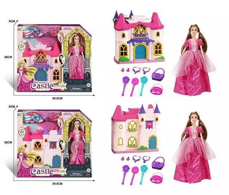 Замок з лялькою KDL 55 (24/2) 2 види, висота: 30 см, шарнірні з`єднання, знімна сукня, аксесуари, р. замка: 23х24, відчин. двері, в коробці, МІКС