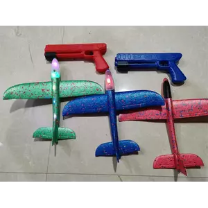 Пістолет із запускачем C 70878 (120) 4 кольори, літак, на колесах, пістолет, пусковий механізм, механічний принцип роботи, світло літака, в пакеті