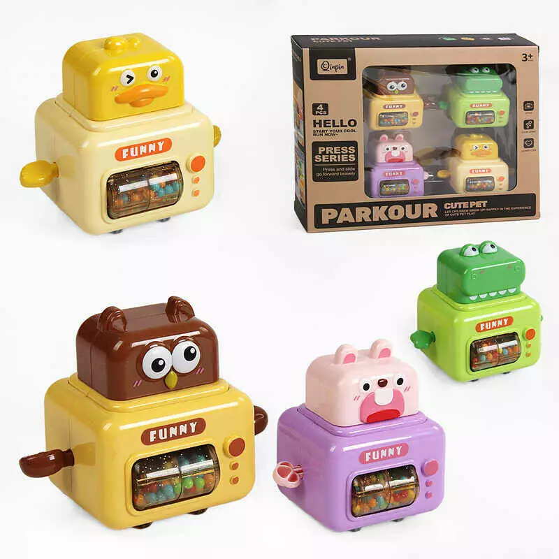 Заводна гра HY 87 (36/2) 4 штуки, завідний механізм, тріскачка, брязкальце, в коробці