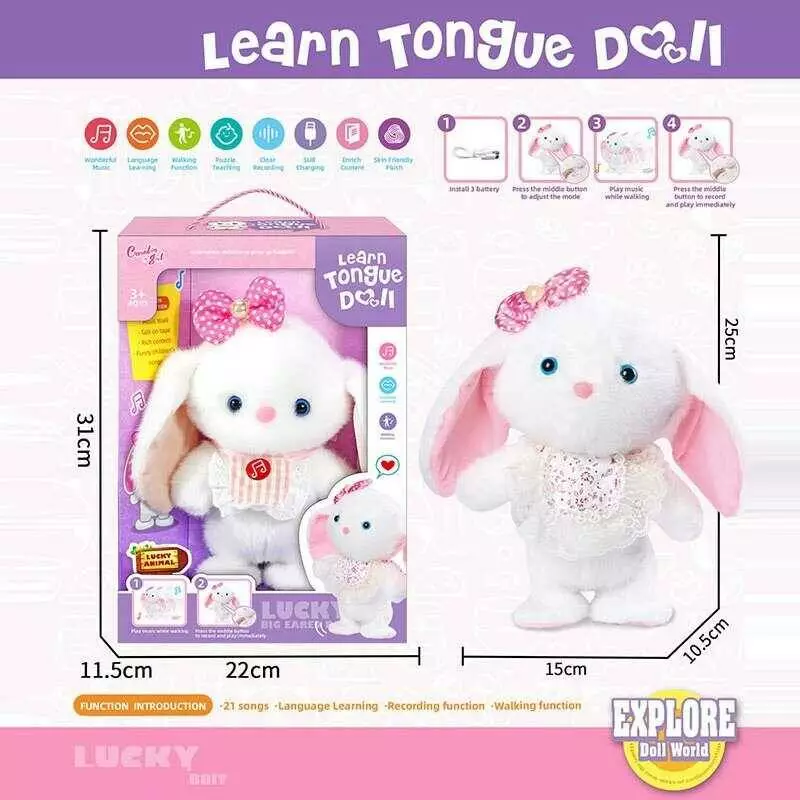 Інтерактивна тваринка 18811-2 (24) "Зайченя", акумулятор 3.7 V, кабель USB-Type C, пісні, запис голосу, ходить, в коробці