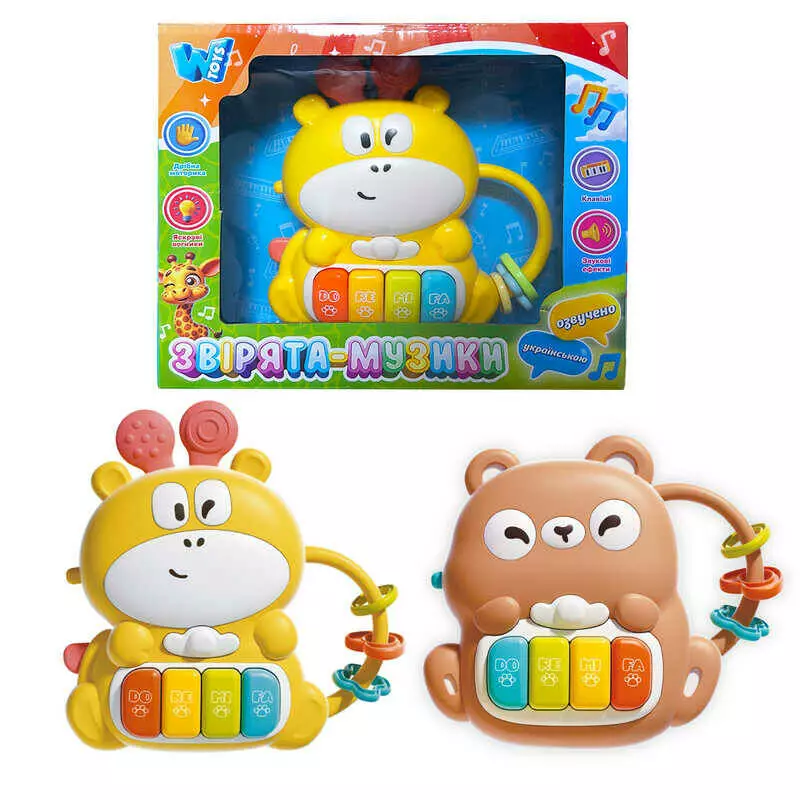 Піаніно “Звірята-музики” 77515 (96) "WToys", 2 види, ОЗВУЧУВАННЯ УКРАЇНСЬКОЮ МОВОЮ, пісні, казки, ноти, намистини, в коробці, ВИДАЄТЬСЯ МІКС